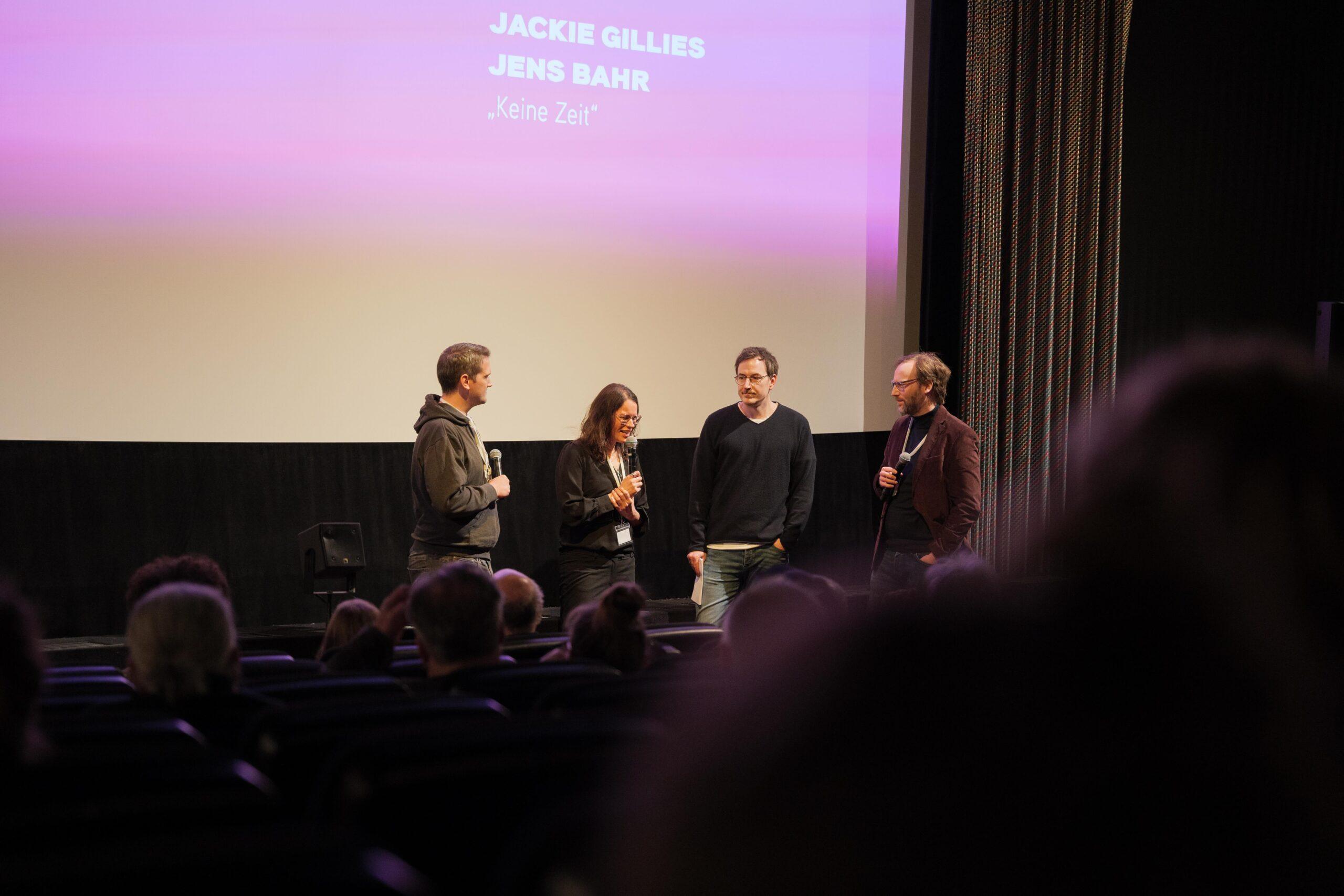 Beim Finale des Drehbuchpreis Schleswig-Holstein 2024 durften wir nicht nur zwei hervorragende neue Stoffe auszeichnen, sondern außerdem im Rahmen eines exklusiven Test-Screenings die fertige Verfilmung des 2022 ausgezeichneten Stoffes „Keine Zeit“ von Jens Bahr sehen. Ein sehr berührender Film und vor allem ein toller Anreiz zu sehen, was aus einem ausgezeichneten Drehbuch werden kann! Autor Jens Bahr und Regisseurin Jackie Gillies, ebenfalls DPSH-Preisträgerin, waren anwesend.